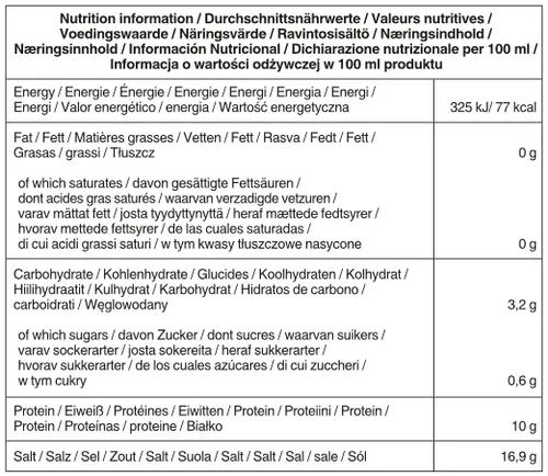 La nostra Salsa di soia fermentata naturalmente a ridotto contenuto di sale ha i seguenti valori nutrizionali per 100 g: