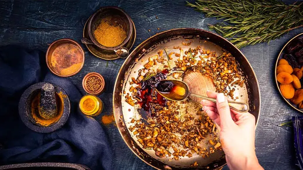 Un piatto dolce e salato di ispirazione mediorientale: agnello brasato, prima marinato con Salsa di Soia Kikkoman, zenzero e curcuma, e poi cotto a fuoco lento con prugne, datteri e albicocche secche. Sarà il protagonista originale e raffinato della tua cena delle feste.