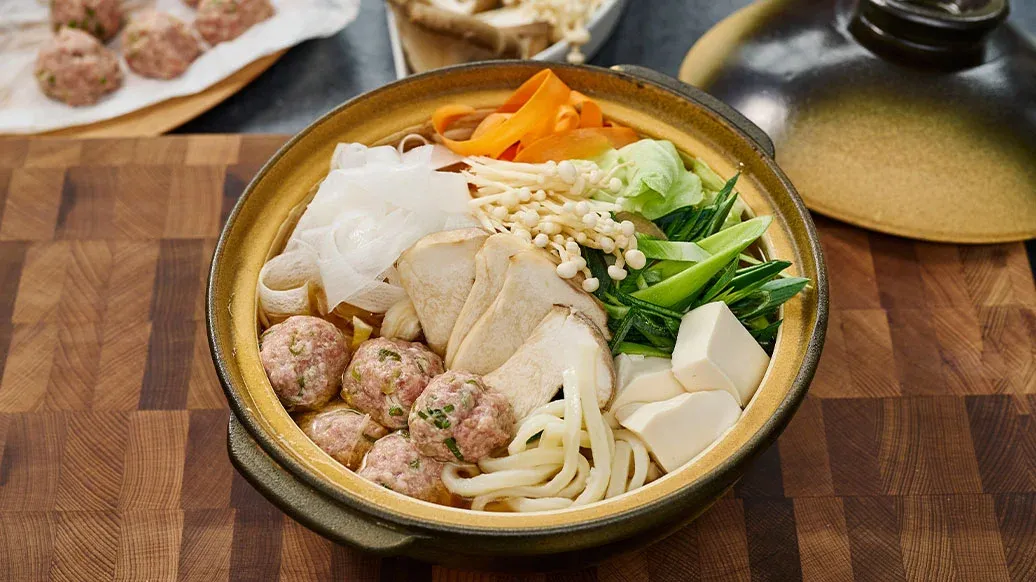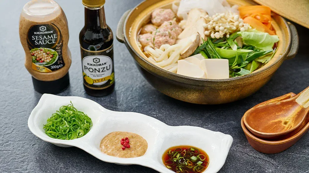 Un tempo servito nelle palestre di sumo per dare forza e resistenza, questo sostanzioso stufato è un concentrato di polpette di tofu, verdure fresche e noodles. Il tutto è insaporito con la Base per Zuppa Ramen Kikkoman e l'Olio di Sesamo Kikkoman, e servito con salse di accompagnamento.