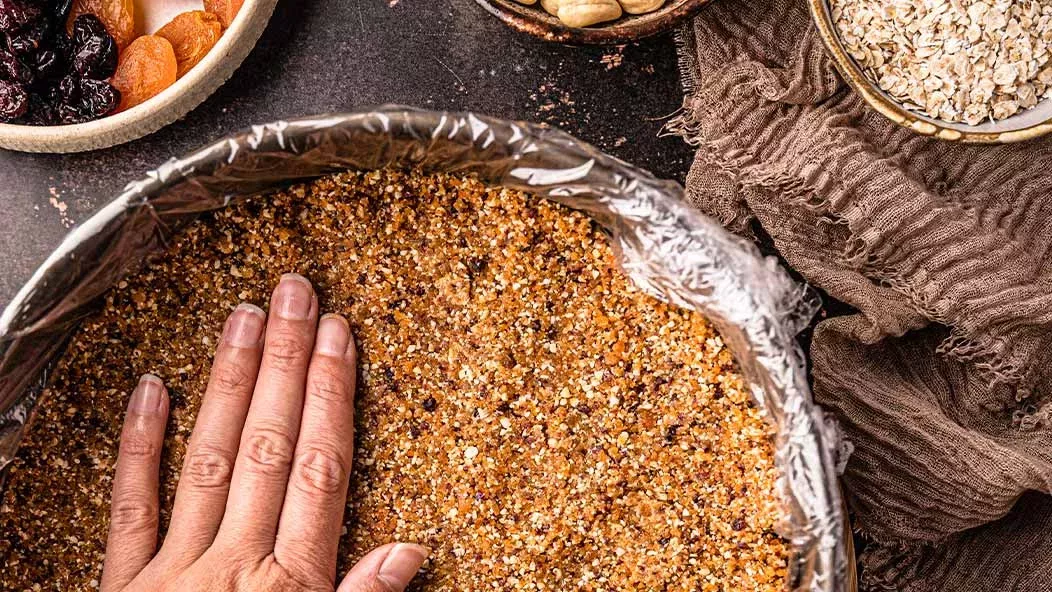 50 g di albicocche secche – 20 g di mirtilli secchi – 20 g di uva passa – 100 g di anacardi – 40 g di avena – 2 cucchiaini Salsa di Soia a Fermentazione Naturale Kikkoman – 2 cucchiai di burro di arachidi