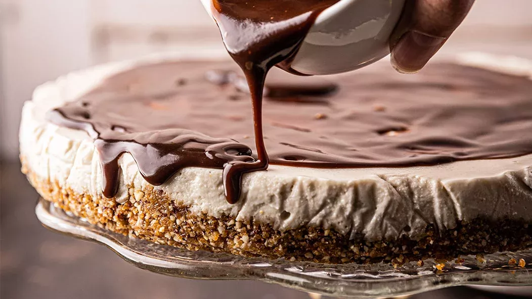 Può una cheesecake essere vegana? Assolutamente! Gli anacardi sono l’ingrediente segreto di questa ricetta. Prova la cheesecake senza cottura a base di anacardi su una base di nocciola leggermente salata. Il tutto guarnito con cioccolato e caramello e arricchito con la salsa di soia Kikkoman a fermentazione naturale.