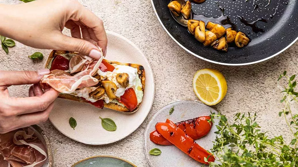 Trasporta le tue papille gustative in Italia con la nostra ciabatta tostata. Ovviamente non poteva mancare un ripieno ricco di peperoni grigliati, burrata cremosa, prosciutto crudo saporito e funghi caramellati. Una ricetta idilliaca in ogni morso. Buon appetito!