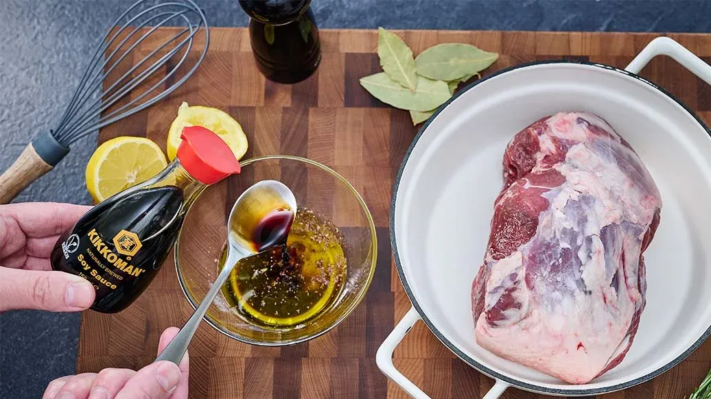 Una rivisitazione originale del classico turco Kuzu Tandir: un cosciotto d'agnello a cottura lenta, marinato con Salsa di Soia Kikkoman, limone ed erbe aromatiche che danno una ricca nota umami alla carne. Servilo con un aromatico pilaf di orzo e verdure tenere per un piatto invernale ricco e confortante.