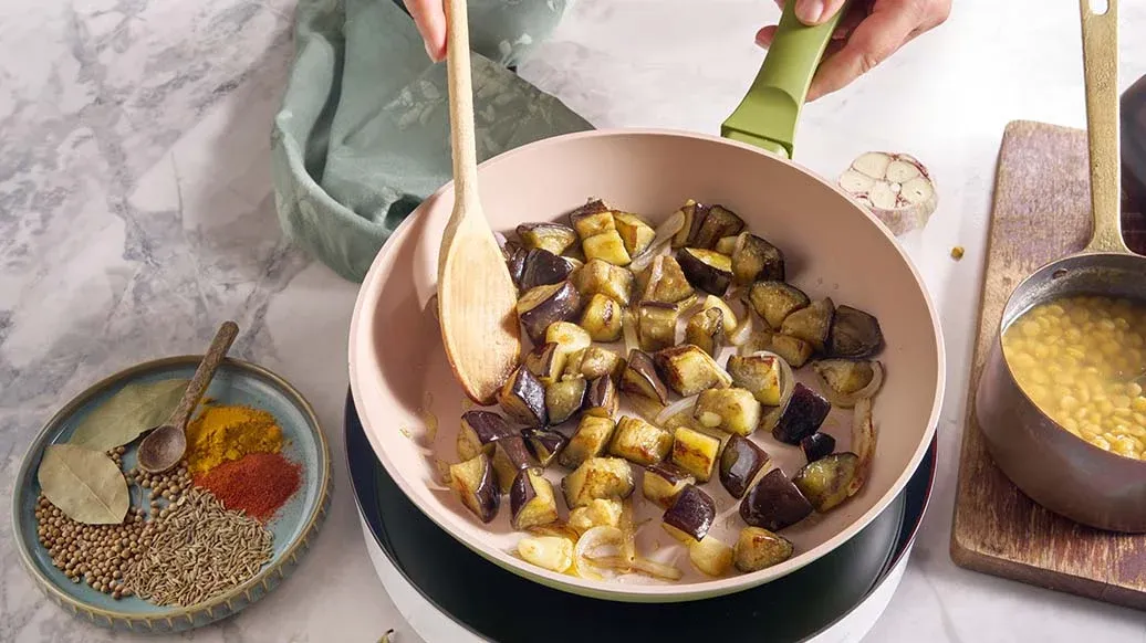 Lasciati avvolgere dai sapori di questo dal di ceci chana, cotto a fuoco lento con melanzane e aglio arrostito. È arricchito da un mix di spezie affumicate e dalla Salsa di Soia Kikkoman. Puoi servirlo con naan all'aglio appena fatto e coriandolo fresco.
