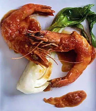 Tritare finemente aglio, zenzero e porro. Mescolare per bene tutti gli ingredienti con la salsa al chilli. Spellare il centro dei gamberetti. Mettere da parte coda e testa. Rimuovere le interiora. Asciugare e spennellare leggermente la carne con la salsa di soia senza glutine Tamari a fermentazione naturale Kikkoman. Friggere i gamberetti in olio bollente fino a doratura. Togliere dalla padella, versare la salsa ridotta in purea al di sopra e cuocere. Aggiungere olio di sesamo tostato q. b.