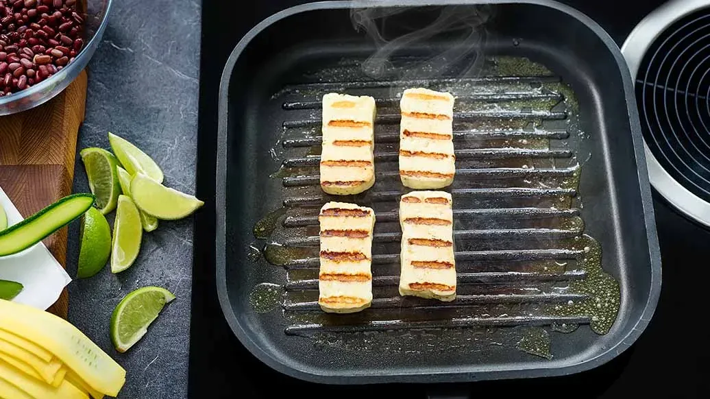 Cerchi un'idea perfetta per il pranzo, per un sano spuntino in ufficio o per una festa in giardino? Prova questa insalata di zucchine, fagioli azuki e halloumi, accompagnata da una vinaigrette tiepida di melanzane preparata con la Salsa Ponzu al Limone Kikkoman. È fresca, saziante e veloce da preparare.