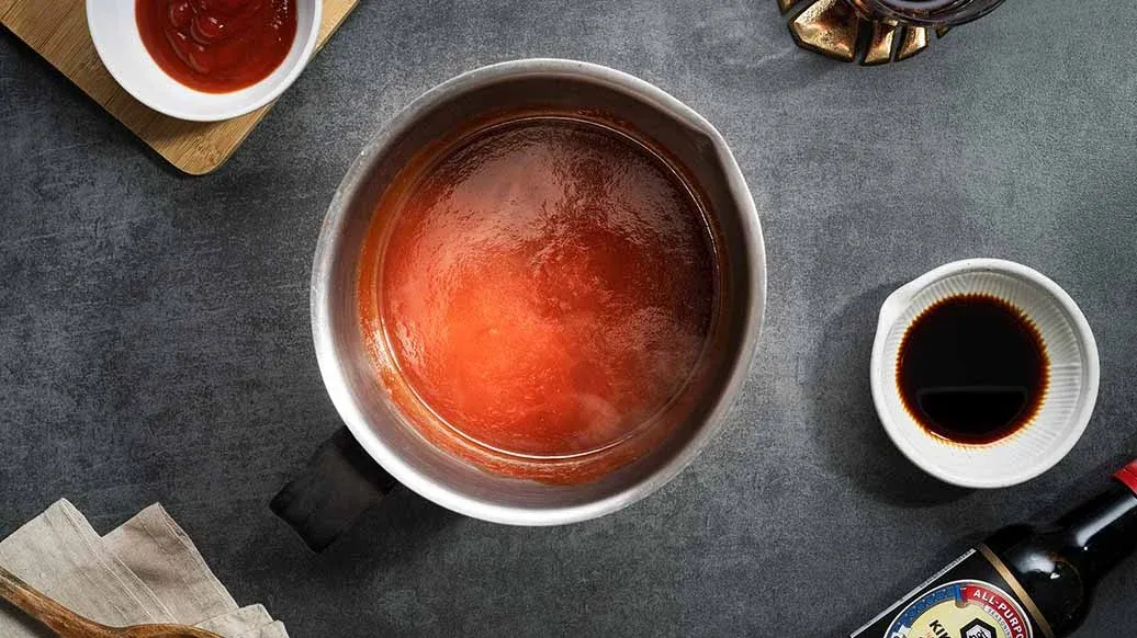 3 cucchiai di vino rosso – 3 cucchiai di ketchup – 2 cucchiai di salsa Worcestershire – 1 cucchiaio Salsa di Soia a Fermentazione Naturale Kikkoman – 1 cucchiaio di zucchero