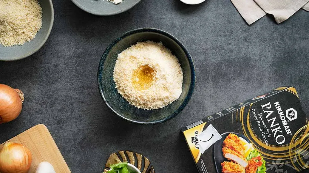 90 g Panko Kikkoman - Pangrattato in Stile Giapponese – 2 cucchiai di parmigiano grattugiato – 2 cucchiai di olio d'oliva