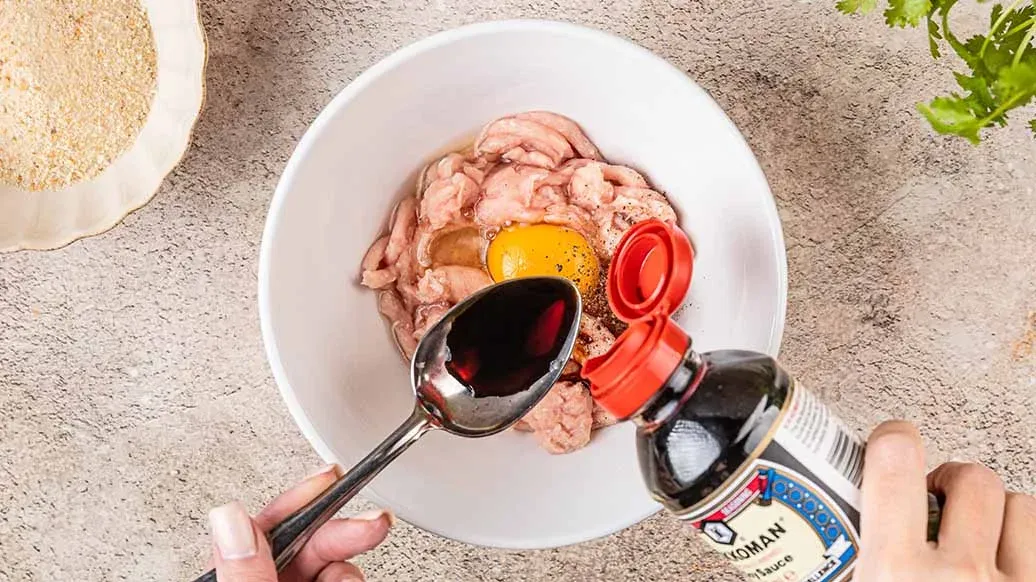 200 g di carne macinata di tacchino – 1 uovo crudo – 1 cucchiaio Salsa di Soia a Fermentazione Naturale Kikkoman – ½ cucchiaino di pepe – 3 cucchiai Panko Kikkoman - Pangrattato in Stile Giapponese – 1 ½ cucchiaio di olio vegetale
