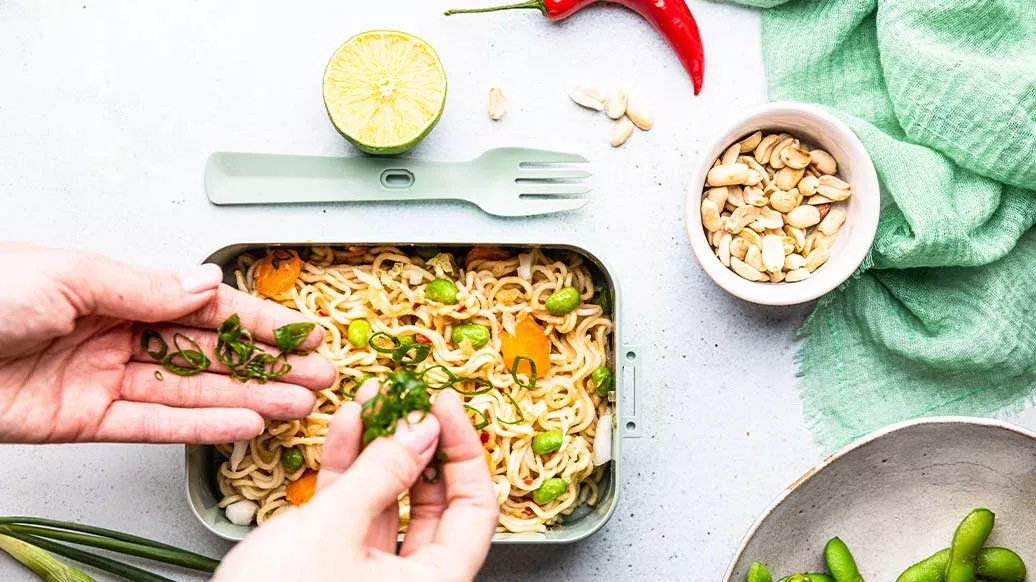 Soddisfa la tua voglia di noodles con questi gustosi noodles di miso immersi in una ricca salsa di arachidi. Puoi accompagnarli con cavolo fresco, carote ed edamame. Deliziosamente pronti nel tuo piatto in soli 20 minuti e perfetti per le giornate in cui vai di fretta!