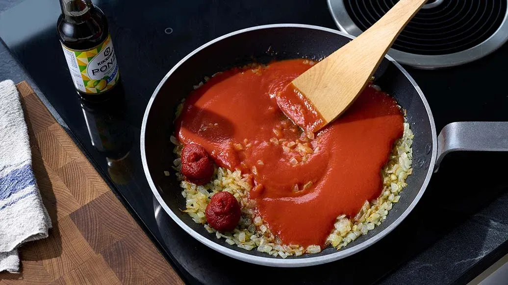 È possibile sostituire la Salsa Ponzu al Limone Kikkoman con Salsa di Soia Kikkoman e succo di limone o lime. Prova a sostituire il concentrato di pomodoro con passata di peperoni o con l’ajvar, per un tocco leggermente fruttato e aromatico.