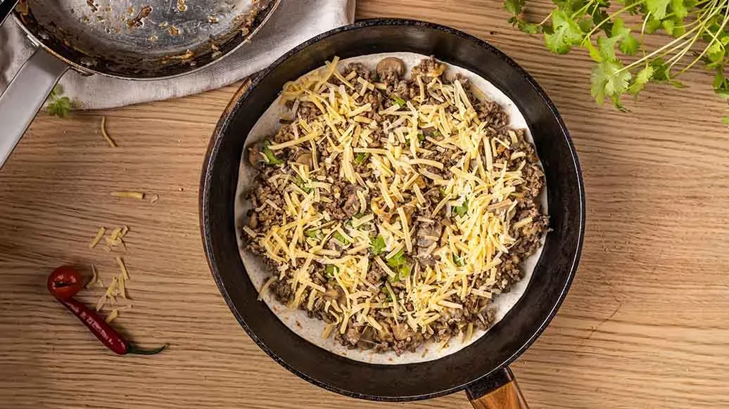 Quesadilla con manzo e funghi