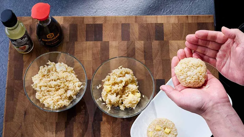 Gli yaki onigiri - polpette di riso grigliate - sono perfetti da provare come pranzo gustoso o come spuntino. Puoi utilizzare riso fresco o avanzato; il risultato sarà un esterno croccante e un interno soffice. In più, scoprirai un sapore ricco di umami grazie alla combinazione di Salsa di Soia Kikkoman, miso e formaggio.