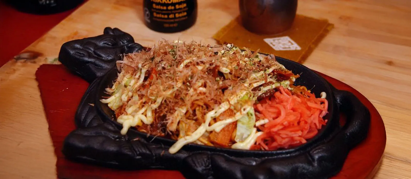 Finiamo con maionese kewpie, katsuobushi, aonori e benishōga.