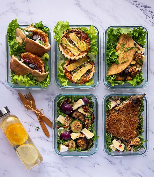 Questi cinque piatti colorati combinano il formaggio camembert con una gran varietà di verdure. Darai vita a pranzi semplici e sazianti — facili da preparare insieme e ideali da portare con sé.