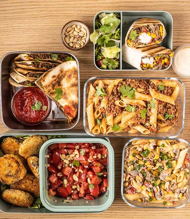 Carne macinata di manzo, funghi, cipolle e pomodori saranno la base perfetta per creare cinque piatti diversi. Potrai cucinare queste basi in un'unica volta e poi servirle con pasta, miglio o tortillas. A legare il tutto, una salsa di pomodoro arricchita con la Salsa di Soia Kikkoman.