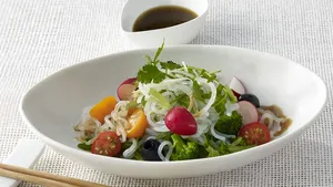 Dal Giappone, Patria di Kikkoman, provengono anche i noodle udon. Simili alla pasta europea, questi sono realizzati con farina di grano, sale da cucina e acqua. Sono i noodle più spessi della cucina giapponese e vengono generalmente serviti in un brodo caldo. Si tratta di un brodo di pesce (dashi), con salsa di soia e mirin, eventualmente speziato con un po’ di peperoncino (shichimi). Viene poi decorato con cipollotti tritati sottili, granchi e verdure in pastella in tempura (kakiage) o tofu fritto (aburaage) e kamaboko, un timballo di pesce a forma di mezzaluna. I noodle udon, brodo e decorazione variano da regione a regione. I noodle udon sono facili da arrostire e si addicono bene come yaki udon per varie verdure, pesce o carne. In estate vengono consumati anche freddi. Minestre, noodle o insalata: gli ingredienti complementari vengono scelti in base alla stagione.