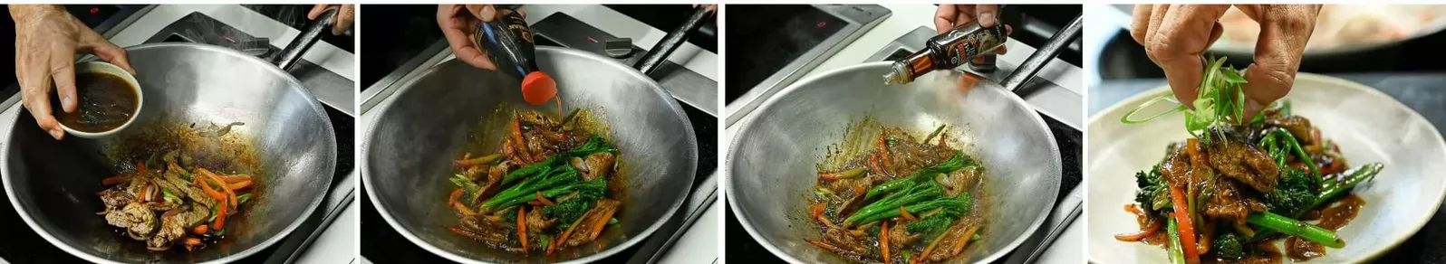 Con le ricette saltate in padella, il perfetto equilibrio è estremamente facile da ottenere. Si tratta della semplice combinazione di 3-4 condimenti aggiunti alla fine, poco prima di servire: la salsa di soia Kikkoman, l'olio di sesamo tostato Kikkoman e 1 o 2 aromi. Questa combinazione garantirà una vera esplosione di gusto. E non c'è bisogno di cercare zucchero, sale, né spezie esotiche difficili da trovare. Andiamo a conoscere i migliori condimenti per le ricette nel Wok.
